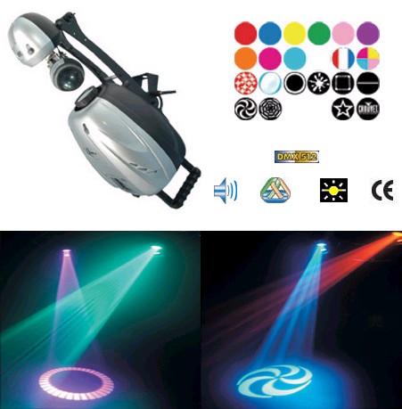 Master/slave, sound & auto, ILS compatible mode LED display menu with invert Pan/Tilt invert option Display auto On/Off Removable stands Micro-stepping motors Thermal switch Fan cooled Gobo